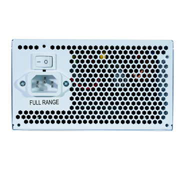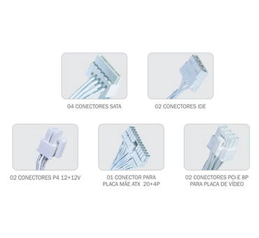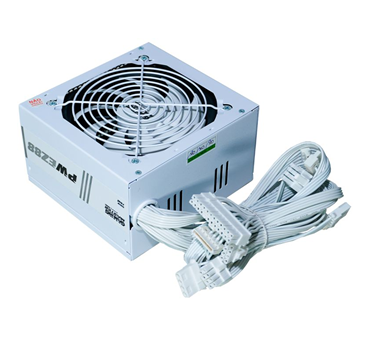Fonte de energia estável, eficiente e com design branco para destacar seu setup.