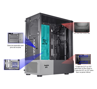 O Gabinete Gamer DEMON II - CG-06W5 foi desenvolvido para quem busca potência, estilo e praticidade em um único produto. Com design robusto e linhas modernas, ele oferece ampla compatibilidade para placas-mãe ATX, Micro ATX e ITX, além de espaço interno otimizado para fácil instalação de placas de vídeo, sistemas de refrigeração e múltiplos discos de armazenamento. Seu painel frontal conta com entradas USB, conexões de áudio e botões de controle estrategicamente posicionados para maior conveniência no dia a dia. Equipado com laterais em vidro temperado e iluminação em LED, o DEMON II transforma seu setup em um verdadeiro espetáculo visual, sem abrir mão da eficiência no fluxo de ar e da durabilidade para longas jornadas de uso.