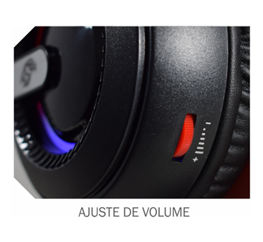 Ajuste de volume prático diretamente no headset, permitindo personalizar o som de forma rápida durante jogos ou músicas.