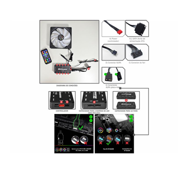 Acompanha controladora com suporte para até 10 fans e 2 barras de LED, compatível com conectores AURA da placa-mãe, garantindo praticidade na instalação.