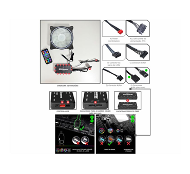 O controlador central permite conectar até 10 fans e 2 barras de LED, entregando máxima expansão e controle sincronizado para setups ainda mais imersivos.