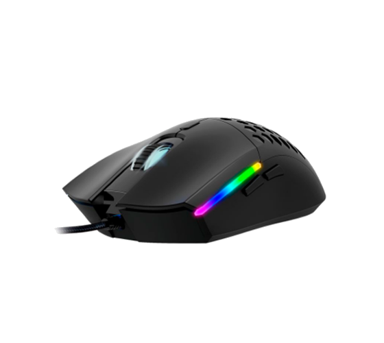 Mouse gamer óptico com até 7.200 DPI, design ergonômico e iluminação ARGB automática em múltiplas cores. Possui 5 botões programáveis, scroll antiderrapante e lateral texturizada, garantindo precisão, conforto e durabilidade para longas horas de jogo.