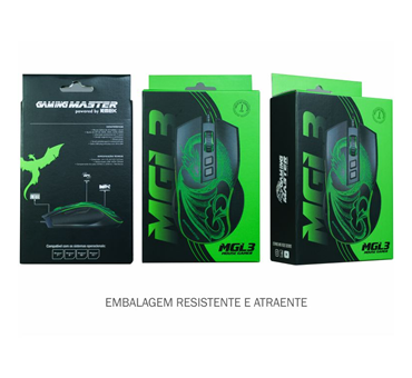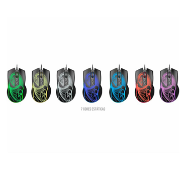 O Mouse Gamer MGL337 Dragão combina desempenho e conforto para jogadores exigentes. Possui 6 botões programáveis, ajuste de DPI de 1000 a 6400 e iluminação automática em 7 cores, garantindo precisão e estilo em todas as jogadas.