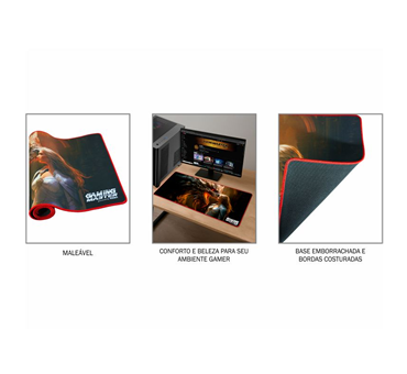 Seu teclado e mouse terão espaço mais que suficiente para encarar qualquer batalha. Nosso mousepad proporciona conforto e beleza para seu ambiente gamer.
