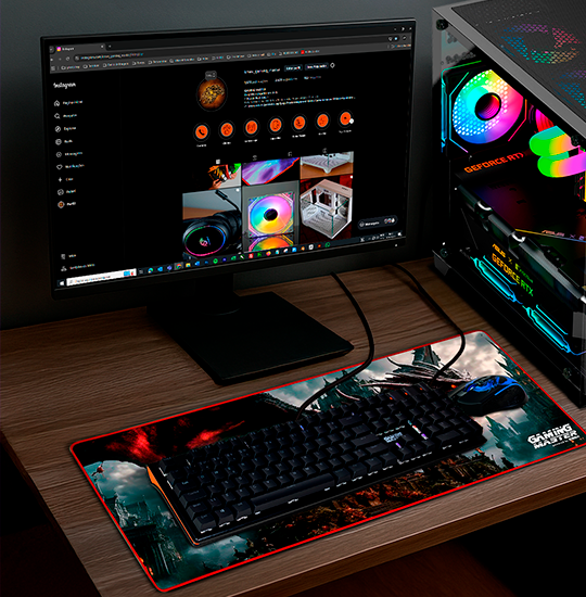 Design marcante com funcionalidade de alto nível. Sua estampa exclusiva traz identidade única ao ambiente gamer, enquanto a superfície otimizada garante deslize suave e controle preciso do mouse