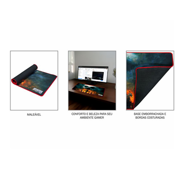 Seu teclado e mouse terão espaço mais que suficiente para encarar qualquer batalha. Nosso mousepad proporciona conforto e beleza para seu ambiente gamer.