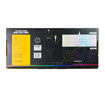 O Teclado Gamer Mecânico SPECTRA FURY White KBW88 combina estilo e desempenho em um design compacto de 61 teclas. Com switches Blue para máxima precisão, iluminação multicolorida e layout ABNT2, é a escolha perfeita para gamers que buscam um periférico resistente, prático e com visual moderno na cor branca.