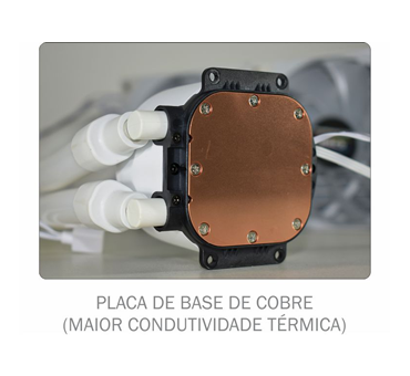 Com ventoinhas de alto desempenho e tubos reforçados, o sistema garante durabilidade, fluxo de ar otimizado e maior segurança no resfriamento do processador.