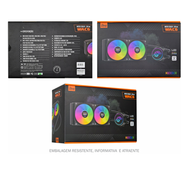 01 (um) ano de garantia. Estrutura do fan em preto com amortecedor de impacto nas extremidades. Cores dos LEDs: multicolor I estático. Possui 9 lâminas, fabricado em material resistente, capaz de dissipar o calor do processador e da parte interna do computador, mantendo os limites seguros de temperatura dentro do sistema.