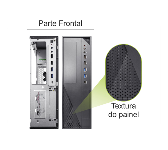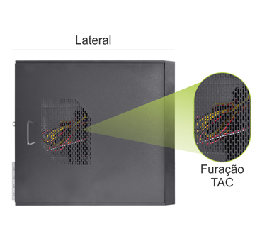 Design lateral com furação otimizada (TAC) para melhorar o fluxo de ar e auxiliar na refrigeração interna dos componentes.