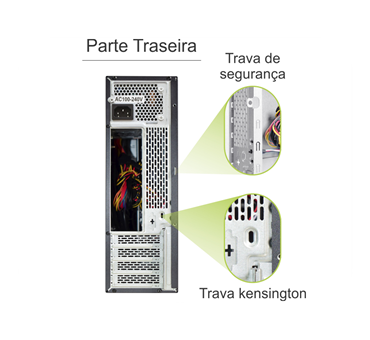 Equipado com trava de segurança interna e trava Kensington, oferecendo proteção extra contra acesso não autorizado e furtos.
